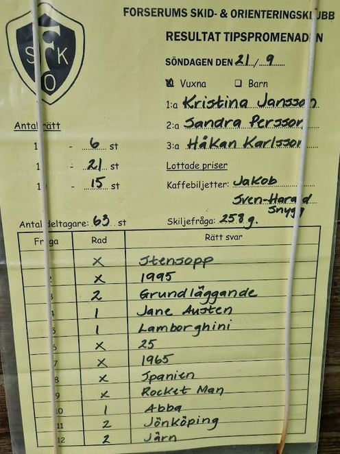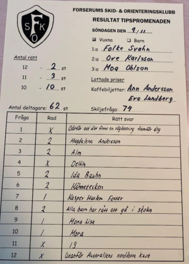 Extrapriser lottade – Gratis tipspromenad med fika Tobias Lindstedt Ann-Marie Ingvarsdotter